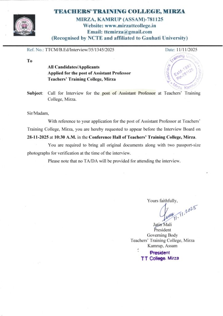 You are here: Teachers' Training College Mirza > Blog > Uncategorized > Interview Notice(Assistant Professor)